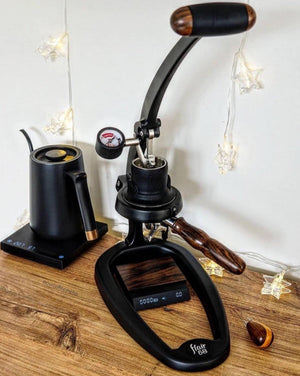 Ar Flair 58 ar nozares standarta 58 mm portafilter varēsiet iegūt fantastisku kafijas kvalitāti espresso mājas.