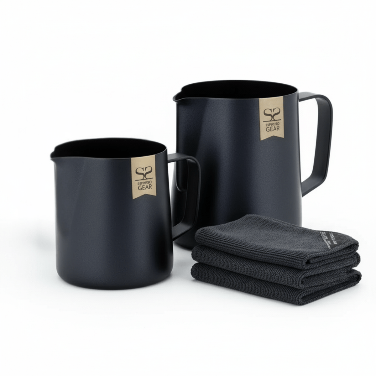 Barista Sākuma komplekts (Melns) - 2 Piena kannas & 3 Barista dvieļi